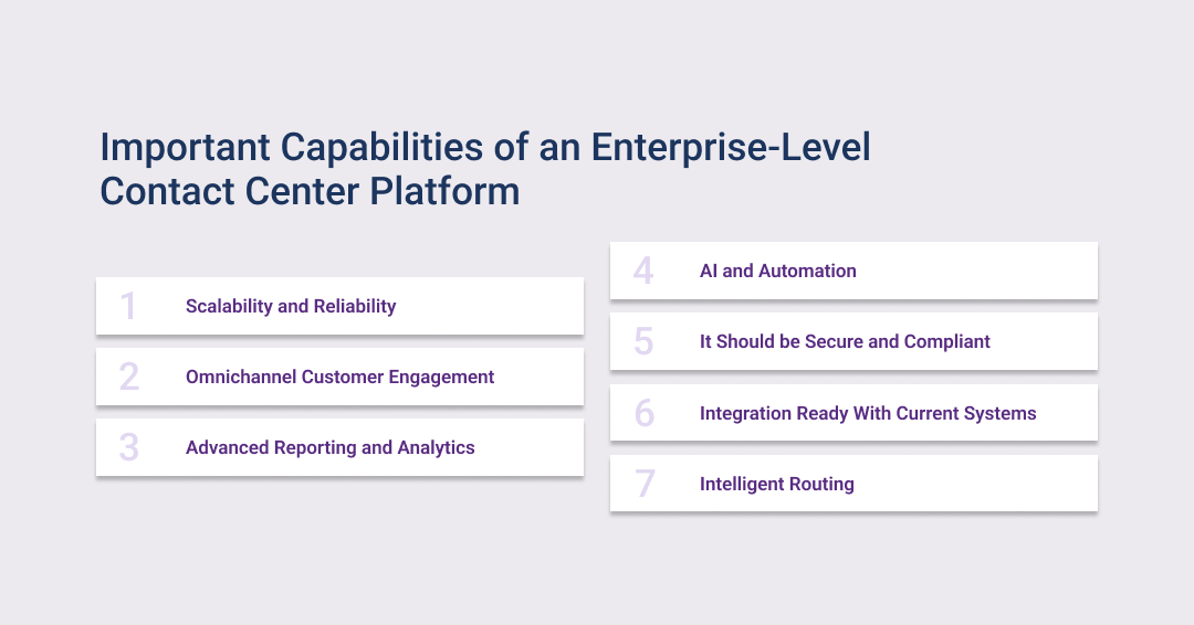 AI capabilities are no longer optional. They are now essential for enterprise contact centers. Conversational AI platforms are excellent at resolving simple requests on the first call, reducing wait times, and improving customer satisfaction. There's also automated routing to consider that directs complex issues to the right human specialists.