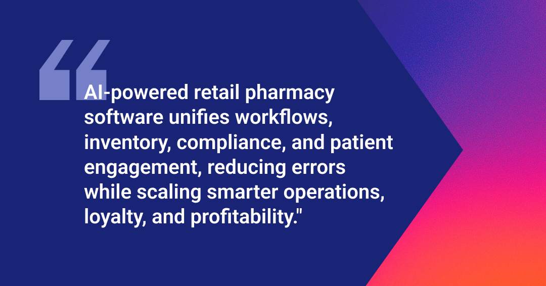 If you’re exploring the best software for retail pharmacies, choosing one with AI capabilities can be a real game-changer. Here’s how it helps you save time, reduce errors, engage patients, and scale your operations all at once.