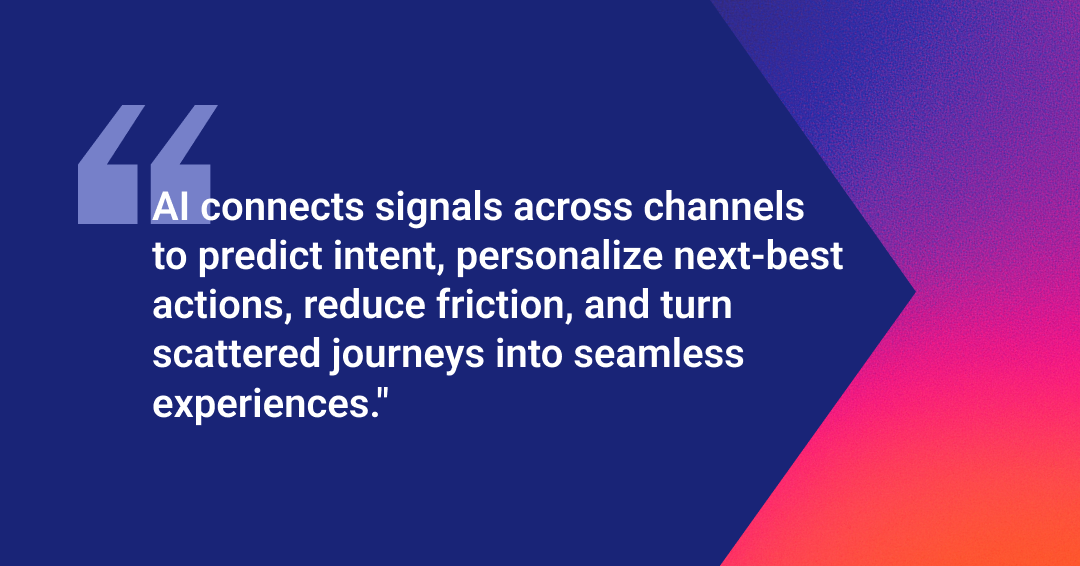 AI uses behavior patterns to anticipate needs and clear the path forward. A banking app may notice users who view mortgage rates but never apply online. The bank identifies the friction point and uses AI to route these users to a phone consultation instead of another form. The human element gives them the confidence to move forward, increasing completion rates.