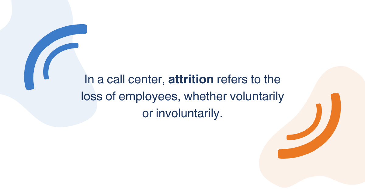 In a call center, attrition refers to the loss of employees, whether voluntarily or involuntarily. It can have a detrimental impact on the overall success and productivity of the organization.