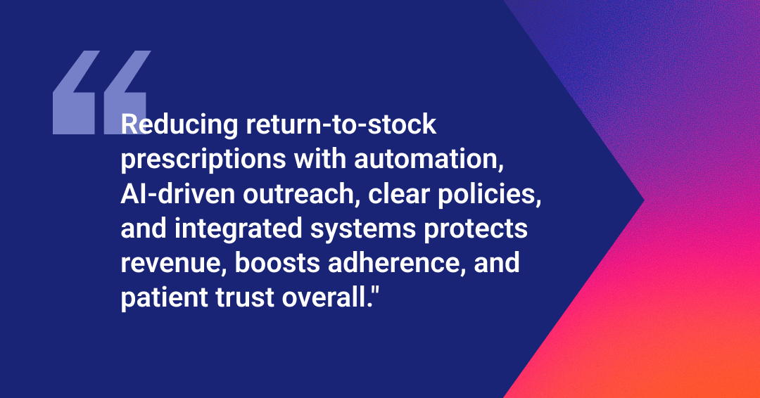 Then there's the patient care angle. High return rates signal medication adherence problems, and with pharmacies having reimbursements and bonuses tied to those same metrics, every missed refill hits the bottom line.
