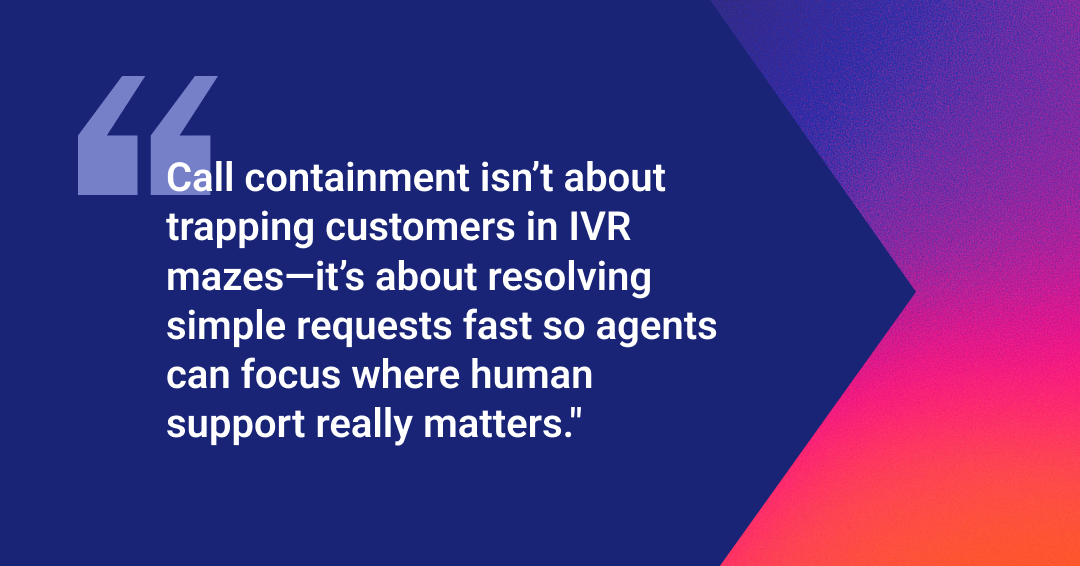 Remember that good containment always feels invisible. Customers solve their issues without realizing they never spoke to anyone. If they start seeing your IVR like a maze that's trying to keep them out, that same system leads to bad customer experiences. The trick is to know when to contain and when to connect.